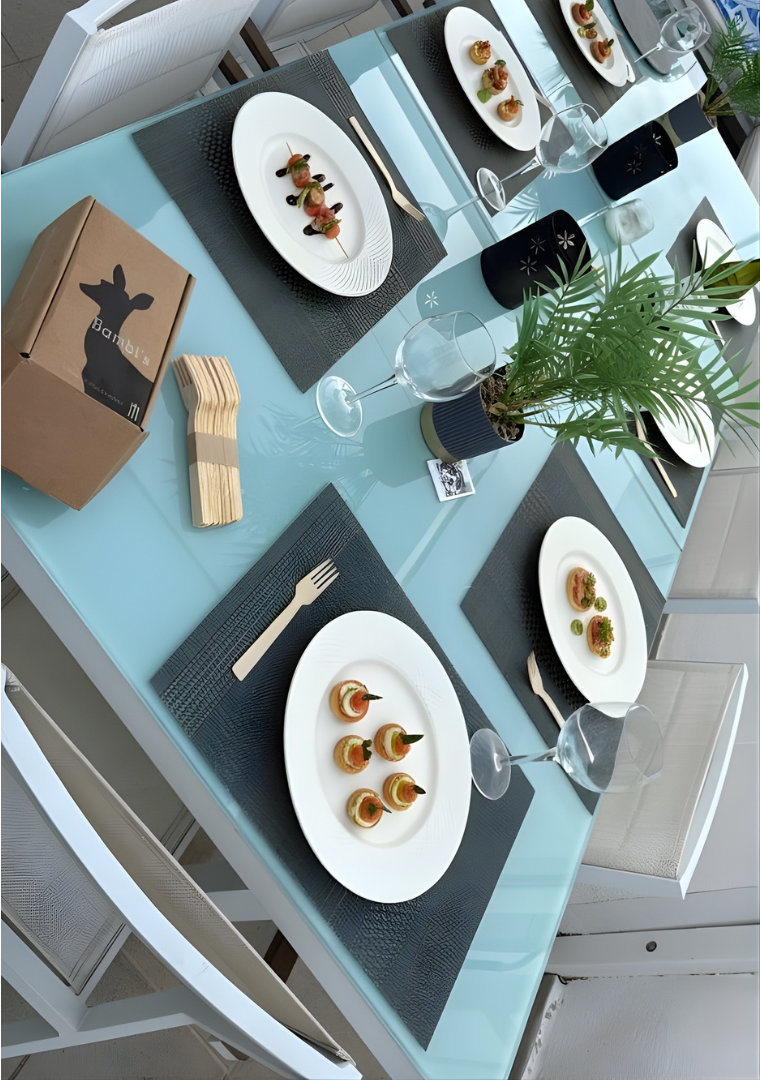 Plastic utensils don’t just pile up in landfills — they also break down into harmful microplastics that end up in our food, water, and oceans. Bamboo is different. Our cutlery is made from premium bamboo that decomposes naturally in months, not centuries. Stylish, durable, and compostable, it’s the perfect way to enjoy meals without guilt, whether at a picnic, party, or barbecue. Make the switch today and say goodbye to plastic — and the microplastics that come with it.